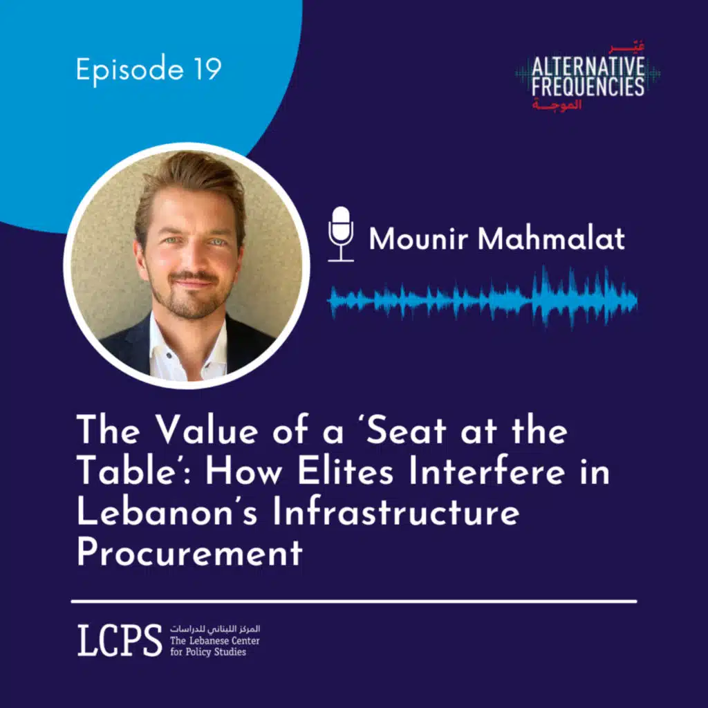 In this episode of Alternative Frequencies, Bilal El-Amine discusses with Dr. Mounir Mahmalat how Lebanon’s political elites interfere in the procurement of infrastructure projects administered by the Council for Development and Reconstruction (CDR). Mounir draws on a detailed ...