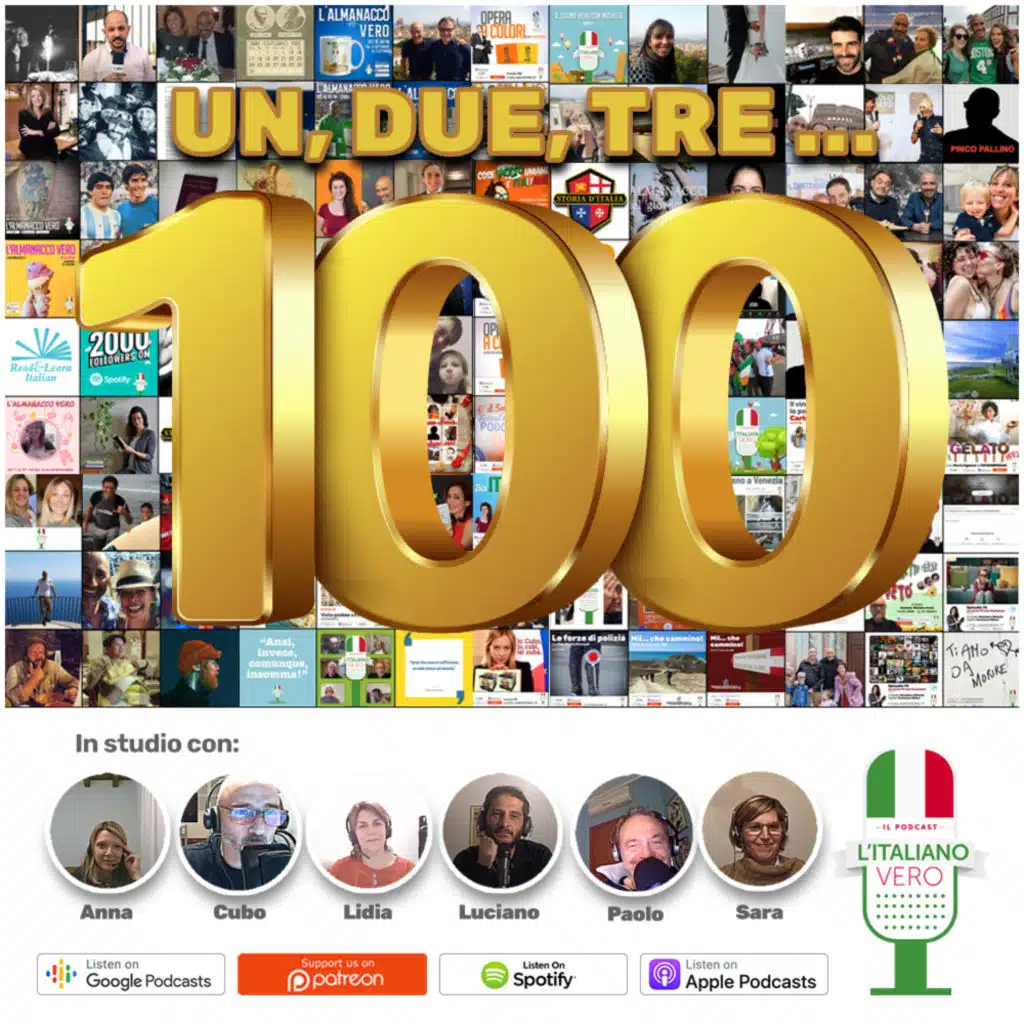 Ciao Italiani Veri! <span data-offset-key="cg0dd-0-0">Siete tutti invitati a festeggiare insieme a noi il centesimo episodio! </span>🍾🥳 Ci siamo quasi tutti .. qualcuno è rimasto a casa al caldo 🛌😉 e scoprirete il perché. <span data-offset-key ...