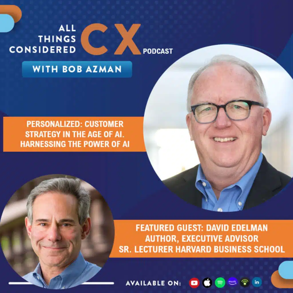 The Five Promises of Personalization. Harnessing the power of AI to personalize the customer experience. Exploding the myth of proving the ROI of CX. This and so much more to talk about with our guest David Edelman on the All Things Considered CX Podcast with Bob Azm ...