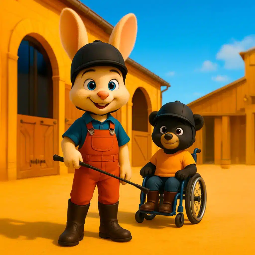 Petit Lapin part au centre équestre pour sa première leçon de poney. Il retrouve son poney préféré Titan et rencontre Petit Ours, un nouveau cavalier en fauteuil roulant. Ensemble, ils apprennent à brosser leurs poneys, à monter en selle et à trotter dans le manège. Petit Lapi ...