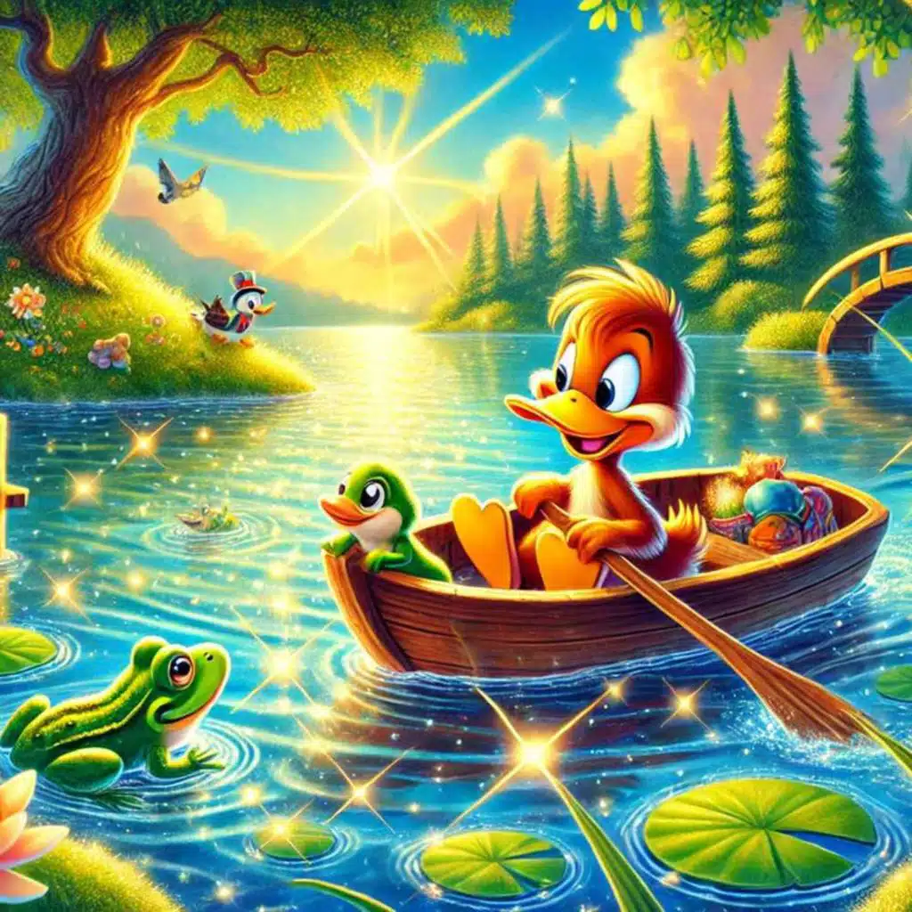 Title: The Little Boat Adventure Level: Beginner (A1) Story : Daffy, a curious young duck, decides to build a small boat and explore the lake. Along his journey, he meets Finny the fish and Frodo the frog, who both offer ...
