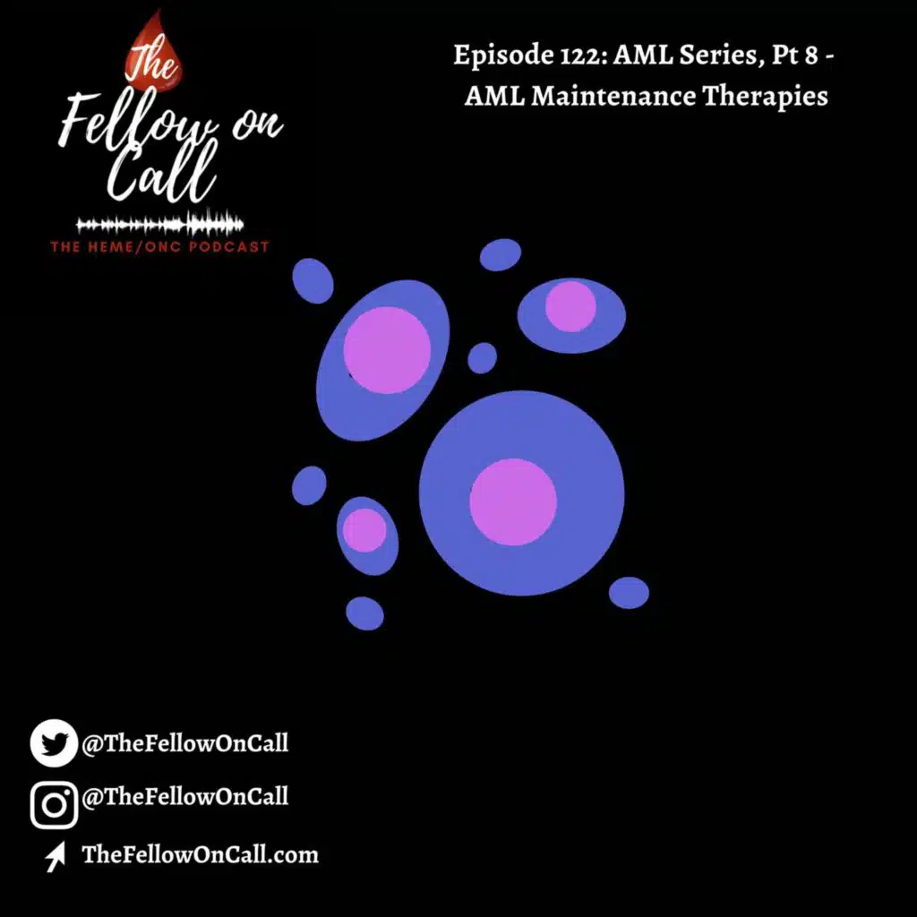 This week, we move to our next phases of therapy for AML, which are consolidation and maintenance. Be sure to check out our prior episodes for a discussion on initial workup and how we incorporate recurrent genetic abnormalities into how we think about AML. Check out figure 1 ...