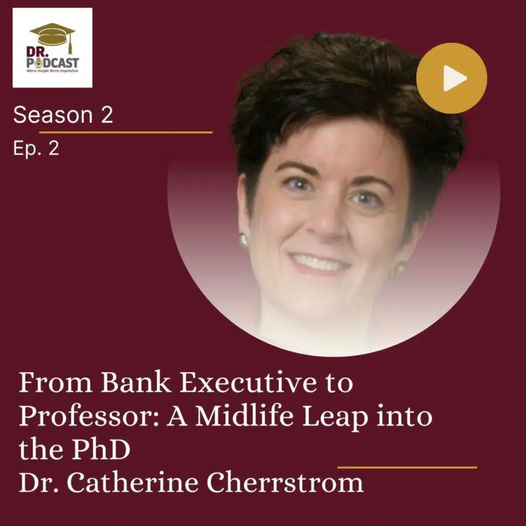 Dr. Catherine Cherrstrom shares her journey from a 27-year banking career to earning a PhD and joining the professoriate. She discusses her dissertation on midlife career transitions for women, the “expert–novice–expert” arc, and the practical strategies—mentorship, small daily w ...Show more