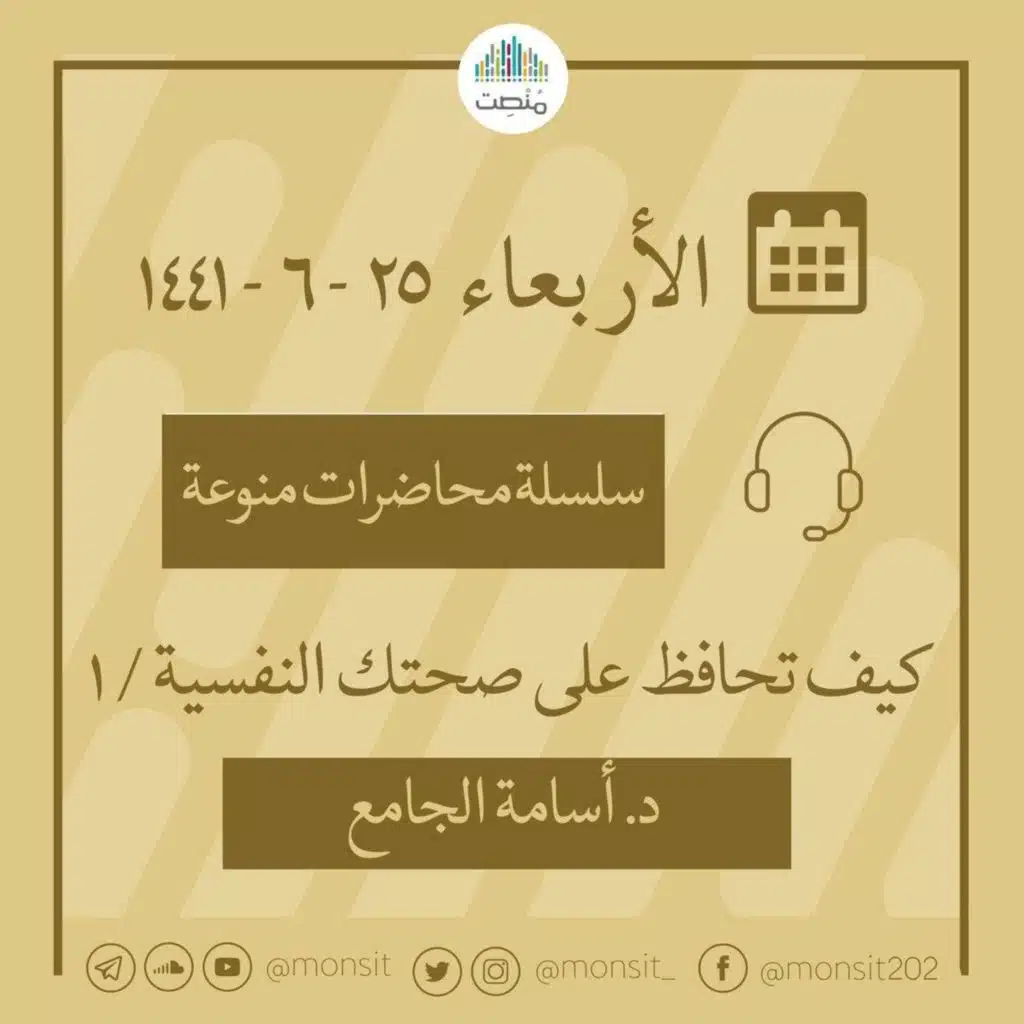 كيف تحافظ على صحتك النفسية | د. أسامة الجامع . 🔻 ماهي مبادرة منصت ؟ 🔹هي مبادرة تساهم في استثمار وقتك من خلال اختيار سلاسل صوتية ومرئية مميّزة لنتشارك سويّاً في الإنصات إليها والتفاعل معها، من خلال خطط واضحة ومواد مُنوّعة وأدوات قياس ميسّرة. —————————————— 🔻 كيف أشترك في البرن ...Show more