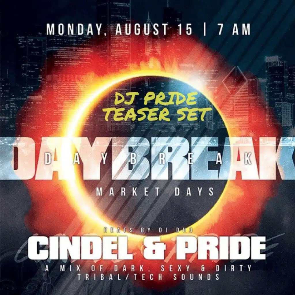 Here is a teaser of the filthy tech and drums Ill be serving up this weekend for market days Daybreak After hours with Dj Cindel. A dirty little ride... Enjoy...See you on the dance floor PRIDE