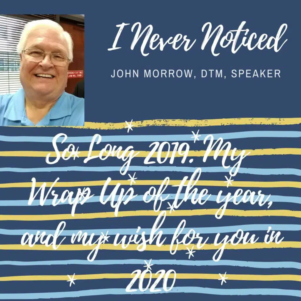 John Morrow, DTM, I Never Noticed 2019 Wrap Up Message 121719