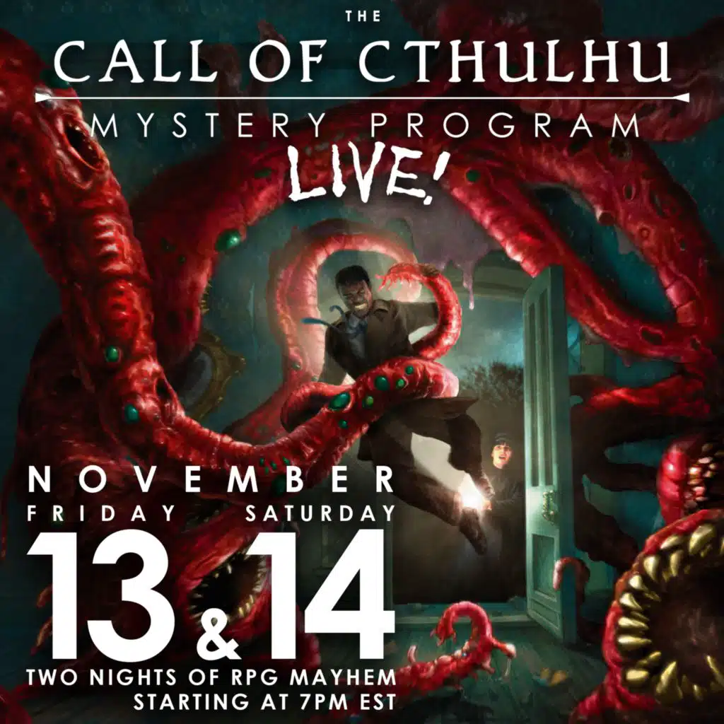 We interrupt this yawing gulf of silence with an important bulletin!The Call of Cthulhu Mystery Program and Chaosium have joined forces to bring you a bold new adventure! A live charity spectacle! Two nights of improvised tabletop storytelling - like only Mystery Program can make ...Afficher plus