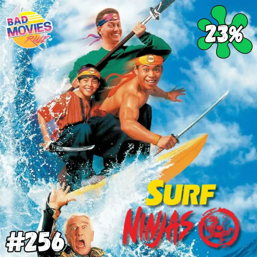 The Bad Movies Rule! crew dives into the gloriously ridiculous 1993 cult flop Surf Ninjas. James, Brian, Ryan, and first-timer Rachel roast Rob Schneider’s suspiciously adult high schooler, Leslie Nielsen’s bumbling cyborg colonel, magic Sega Game Gears, moto-surfing with oars, e ...Show more