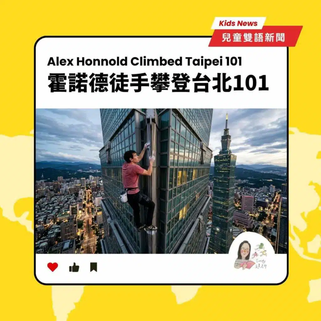 下載本集雙語報紙&學習單 http://u.pc.cd/QbzotalK(開啟檔案的通關密語,就在節目中)【本集新聞英文全文】 Alex Honnold climbed Taipei 101 without ropes on Sunday, January 25. Alex wore a red t-shirt, a pair of climbing shoes, and carried a small chalk bag on his waist to keep his hands from getting sweaty. The climb was f ...Show more